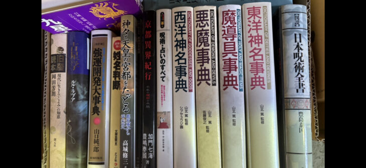 特に東洋神名事典、西洋神名事典、悪魔学大事典、魔道事典、日本呪術全書など、貴重な辞典類も多数含まれており、専門研究者の方が長年にわたり収集されてきたコレクションであることが伺えました。